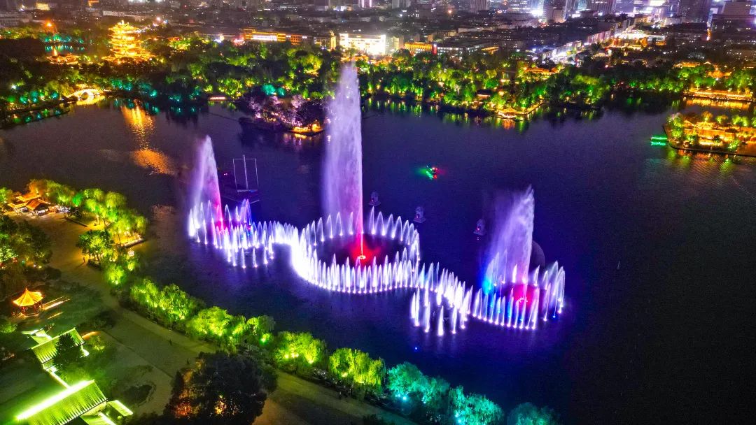 來(lái)大明湖,怎么能錯過(guò)一場(chǎng)泉城夜宴·明湖秀,絢麗多彩的燈光和美景,從波光粼粼的湖面上奔涌而出,噴泉、月屏、浮臺在夜色中交相輝映,一幕幕場(chǎng)景隨著(zhù)音樂(lè )起舞。