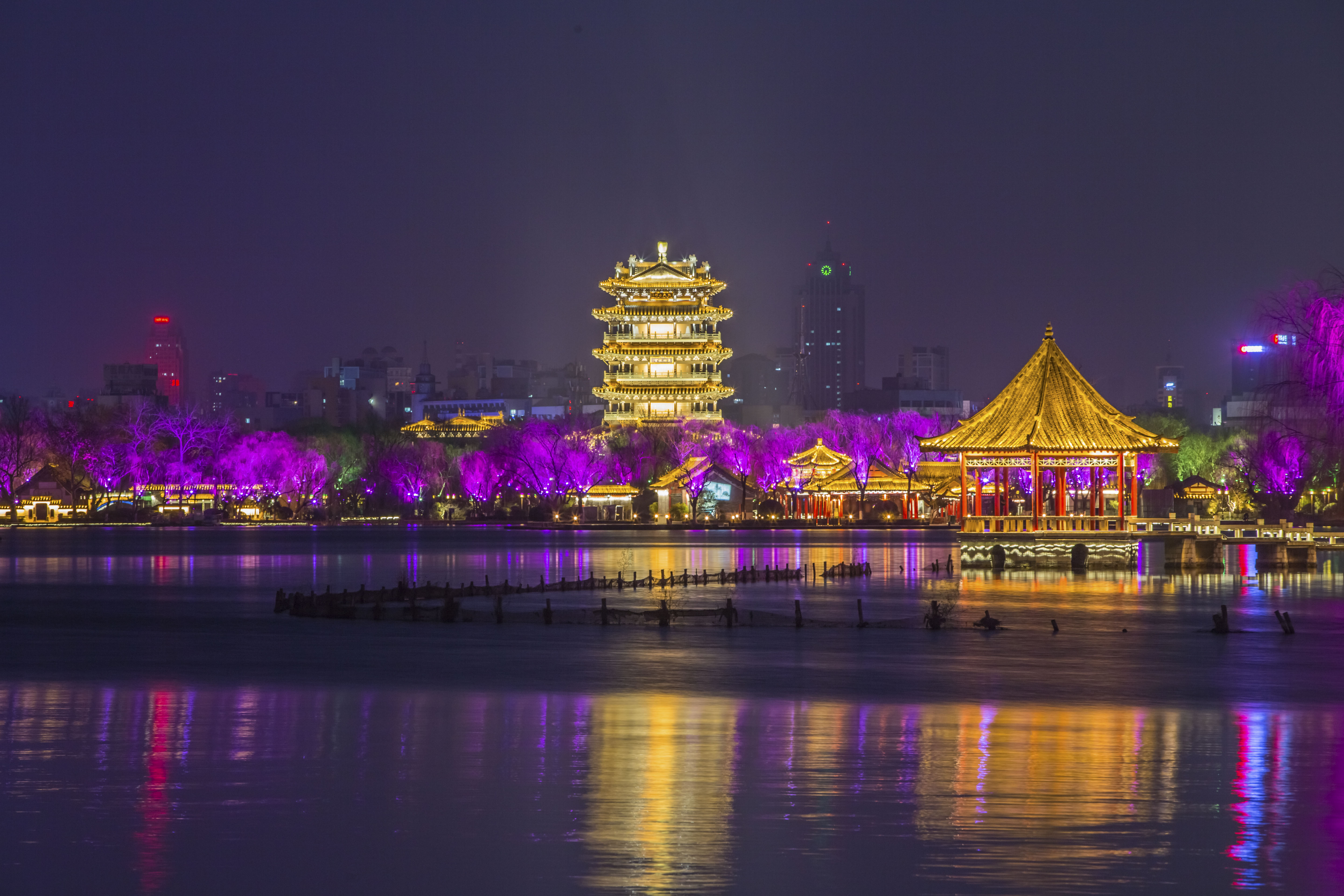 地處享譽(yù)“一城山色半城湖”的濟南大明湖畔的超然樓,夜景不遜于國內任何名樓。因此具備網(wǎng)紅體質(zhì)。