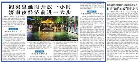 2023年6月5日,《濟南日報》刊發(fā)題為《趵突泉延時(shí)開(kāi)放一小時(shí) 濟南夜經(jīng)濟前進(jìn)一大步》的文章,采寫(xiě)記者為劉燁。文章寫(xiě)到,調整趵突泉公園的夜間開(kāi)放時(shí)間,濟南文旅集團和天下第一泉風(fēng)景區服務(wù)中心更多基于公益角度出發(fā),希望發(fā)揮城市核心景區的表率帶頭作用,為城市夜經(jīng)濟增加載體,營(yíng)造高品質(zhì)夜間文旅消費環(huán)境,滿(mǎn)足人民對美好生活的文化需要,進(jìn)一步促進(jìn)夜經(jīng)濟繁榮發(fā)展。如下為稿件詳情——
