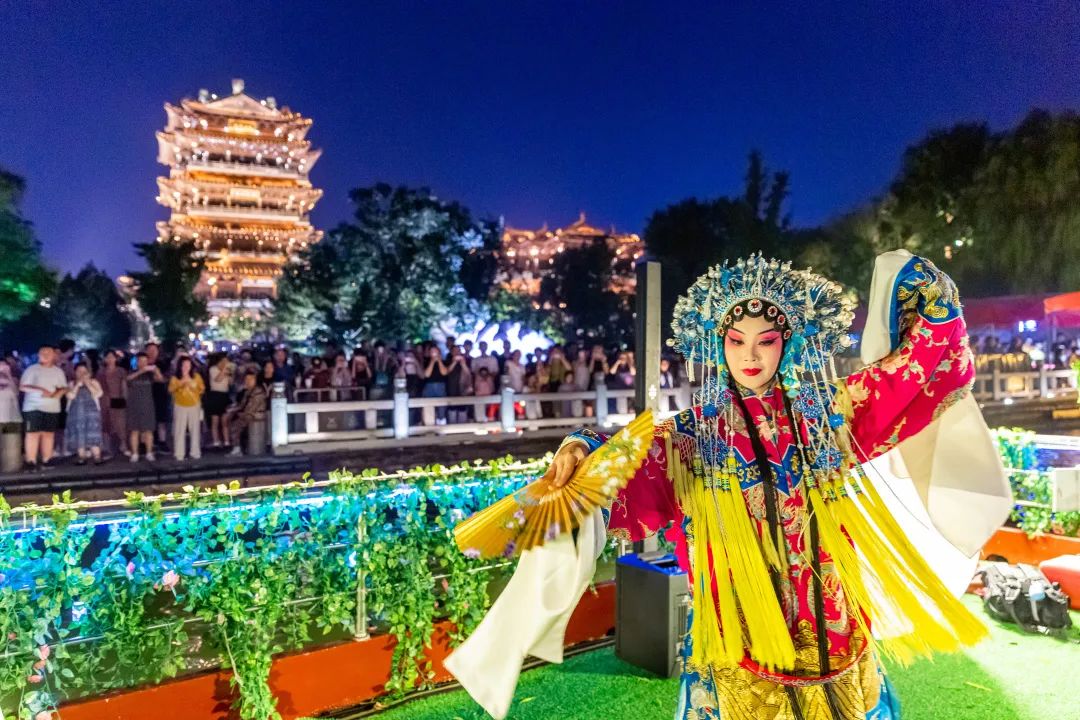 彈撥樂(lè )重奏《春江花月夜》、京歌《梨花頌》和《打登州》選段、戲曲小品《青城山下》、呂劇傳統劇目《逼婚記》……在超然樓前的廣場(chǎng)上,新潮快閃活動(dòng)陸續上演,引爆線(xiàn)上線(xiàn)下“雙流量”。