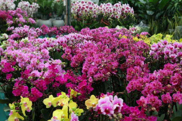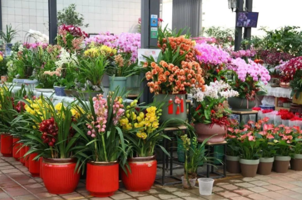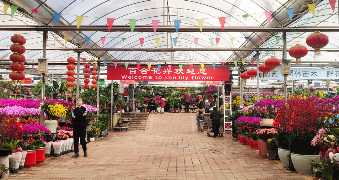 百合花卉展銷(xiāo)市場(chǎng)琳瑯滿(mǎn)目的花卉,形形色色、各式各樣,今年的年宵花造型更加獨特、設計更加新穎、色彩更加鮮明,凸顯大方、精致,處處是花境,處處是美景。