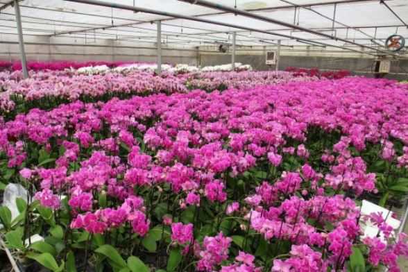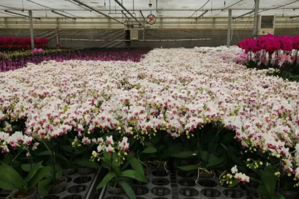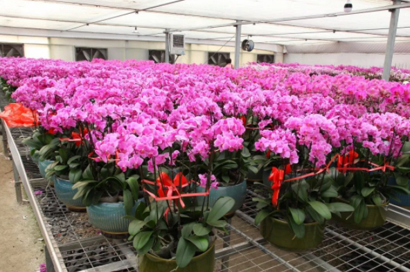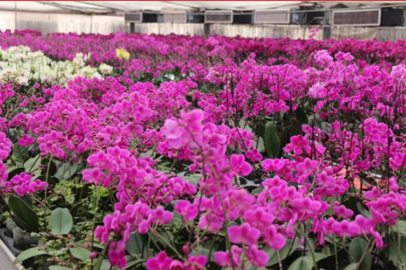 讓我們跟著(zhù)鏡頭,一起領(lǐng)略下濟南國際鮮花港的蝴蝶蘭吧!這里的蝴蝶蘭是從幼苗培育開(kāi)始,經(jīng)過(guò)精心呵護,規?;a(chǎn),標準化管理,現迎來(lái)了花期,成片的蝴蝶蘭色彩斑斕、百花盛開(kāi),仿佛置身于花海中,在欣賞百花盛開(kāi)場(chǎng)景的同時(shí),選購到您稱(chēng)心如意的年宵花。
