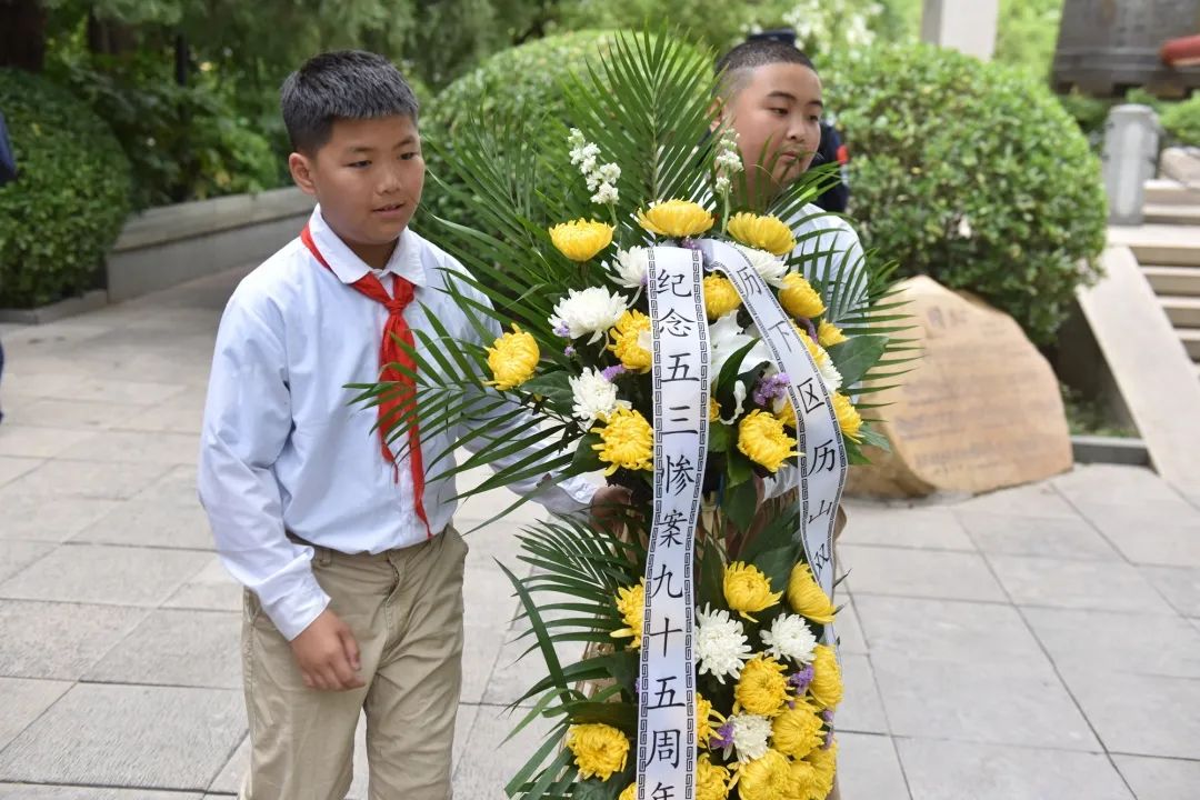 祭奠英靈,緬懷先烈,是對逝去英靈的緬懷,也是對侵略者的抗議,更是勿忘國恥的警示。上午9點(diǎn)40分,參加活動(dòng)的有關(guān)領(lǐng)導和市民代表齊聚五三紀念堂。他們首先向逝去的革命先烈默哀,表達對先烈們的無(wú)限哀思與崇高敬意,隨后社會(huì )各界人士向英烈敬獻花籃,寄托哀思。