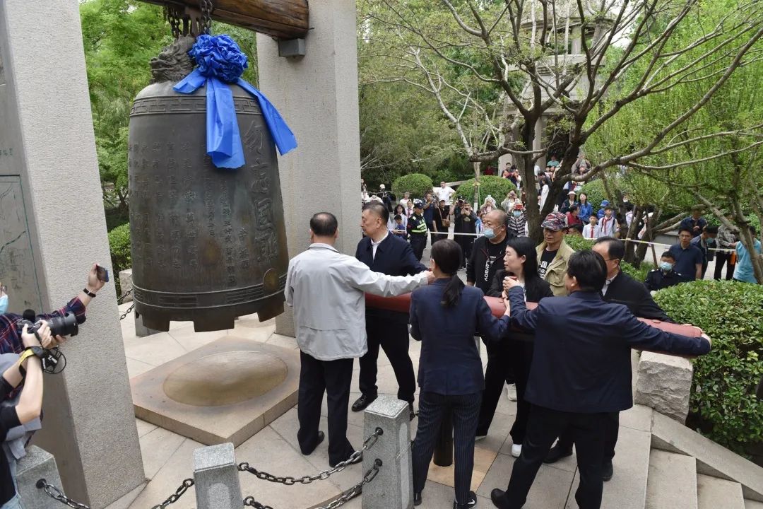 隨后,參與活動(dòng)的領(lǐng)導嘉賓共同敲響了五三鐘,上午10時(shí),全市鳴放防空警報,以此紀念國殤。