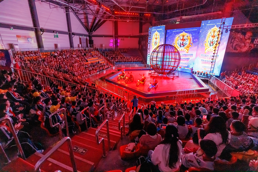 異域風(fēng)情的外籍舞蹈演員載歌載舞、詼諧幽默的小丑演員滑稽互動(dòng)、少數民族激情四射的絕技表演“舌尖上的火焰”……其間,活動(dòng)聚集了來(lái)自全球多個(gè)國家和地區、50余位馬戲演員同臺獻藝,同時(shí),在每個(gè)周末還為市民游客獻上動(dòng)物元素、雜技元素以及演藝元素全面融合的動(dòng)物奇趣大巡游。