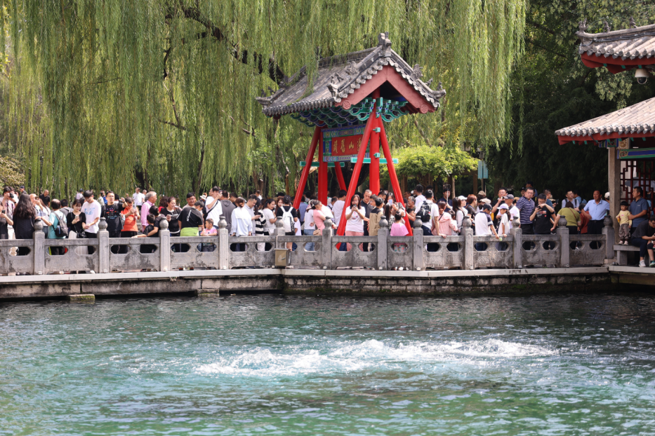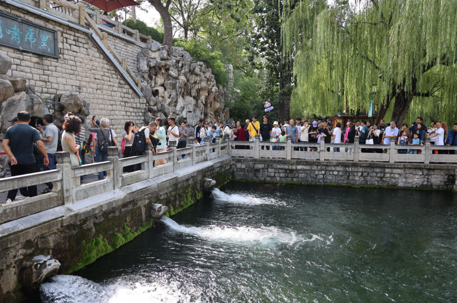 今年恰逢“天下第一泉”趵突泉等重點(diǎn)泉群實(shí)現持續噴涌20周年。這個(gè)超級黃金周,天下第一泉風(fēng)景區自然成了游客蜂擁而至的好去處。“泉源上奮、水涌若輪”的盛景讓市民游客深感不虛此行。“月牙飛瀑”景觀(guān)持續,“黑虎嘯月”氣勢磅礴,濟南一眾名泉景觀(guān)愈發(fā)秀麗。