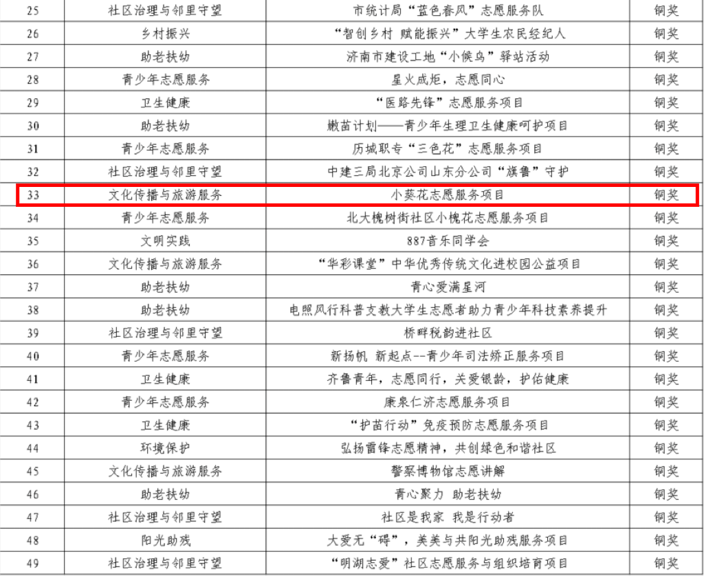 10月17日,由共青團濟南市委、濟南市文明辦、濟南市教育局、濟南市民政局共同舉辦的第五屆濟南市青年志愿服務(wù)項目大賽在龍奧大廈成功舉辦。本屆大賽以“青春志愿行 奮進(jìn)新時(shí)代”為主題,根據項目申報及路演答辯情況,確定全市各志愿服務(wù)組織申報的50個(gè)優(yōu)秀項目進(jìn)入終評,濟南文旅集團旅游開(kāi)發(fā)有限公司“小葵花志愿服務(wù)項目”獲得銅獎。