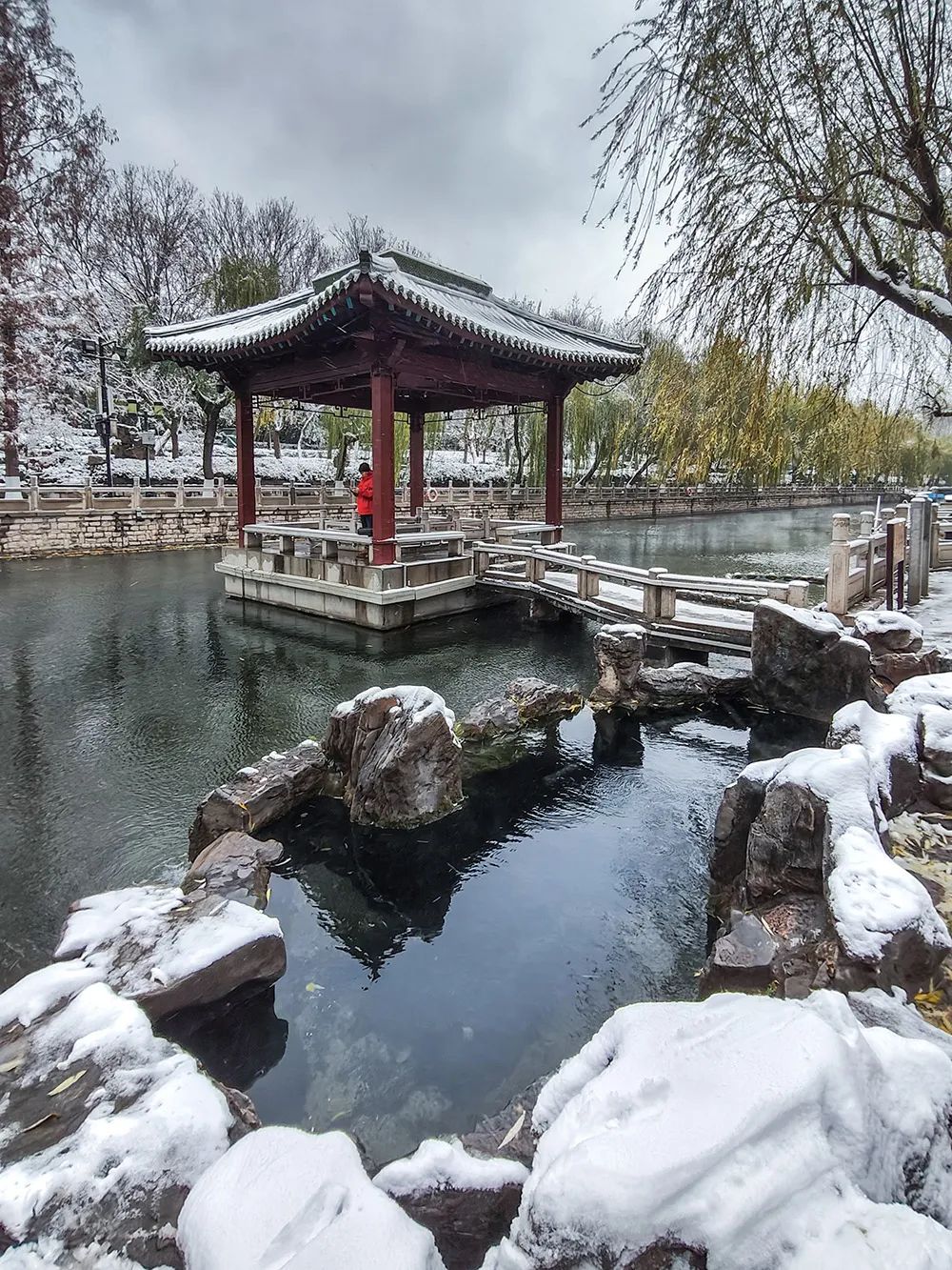 護城河畔銀裝素裹,如詩(shī)如畫(huà)