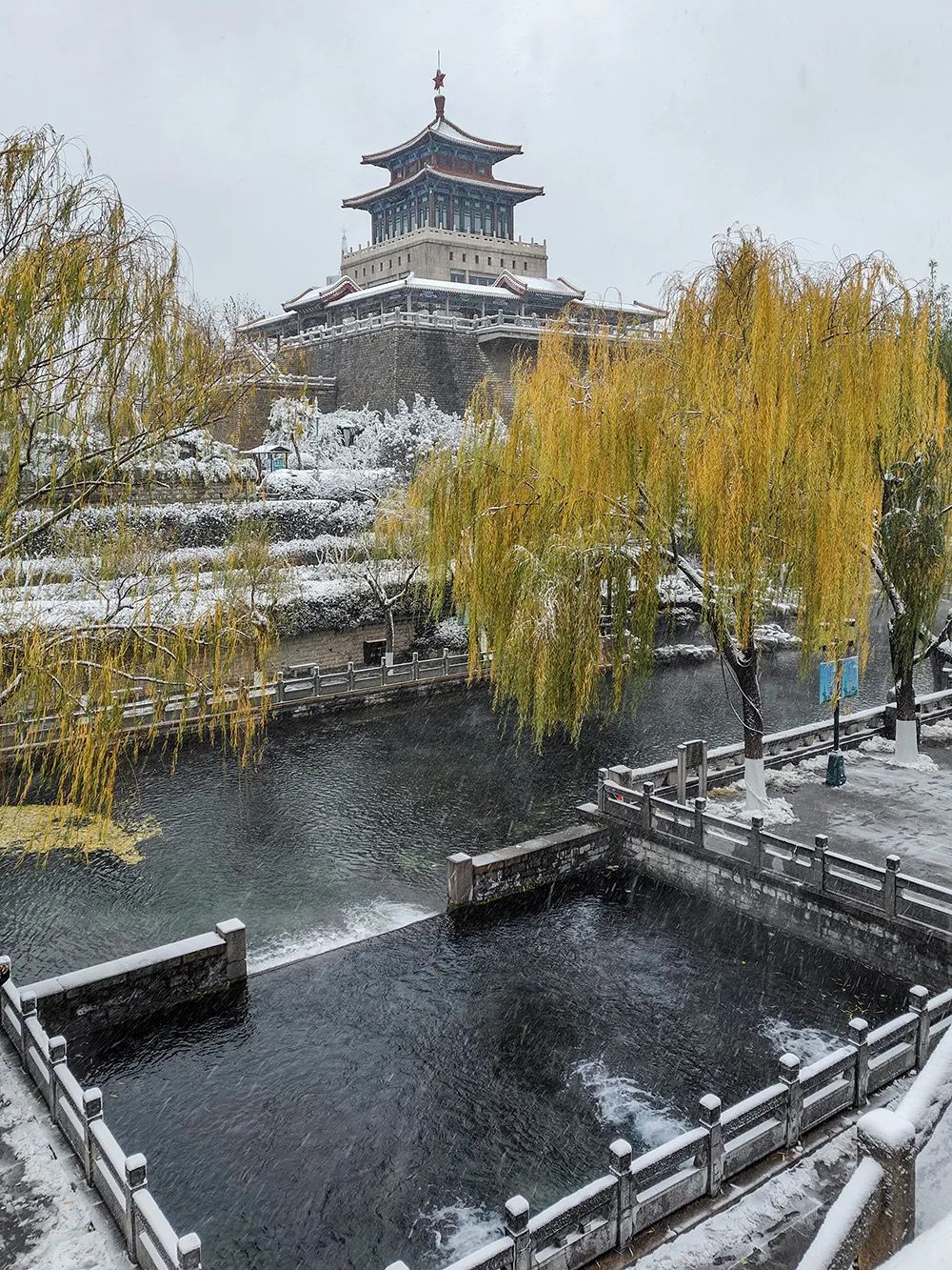 護城河畔銀裝素裹,如詩(shī)如畫(huà)