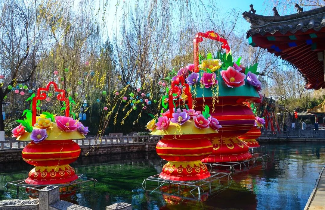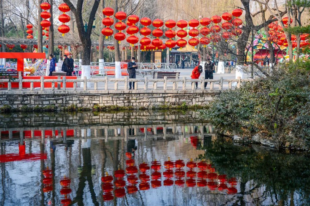 假日期間,趵突泉地下水位依舊保持在為29.50米以上,三股水噴涌正歡,眾多游人選擇在元旦假期來(lái)到泉水邊,與泉水親密邂逅,歡度新年的到來(lái)。公園新春花燈正在安裝中,各種主題的花燈分散在各個(gè)泉池內,在歡騰的泉水映襯下,十分好看,充滿(mǎn)了喜慶的節日氣氛,彩色的鸚鵡、嬌俏的荷花、火紅的火烈鳥(niǎo)以及象征美好寓意的白菜和如意等都已安裝好,等待最后的亮相。