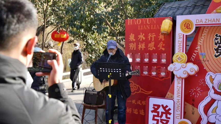 假期期間,護城河邊的黑虎泉碼頭和大明湖畔的荷香村開(kāi)展以美好生活為主題的互動(dòng)式演出。兩個(gè)舞臺分別突破原有傳統民俗表演,將流行元素與民俗文化相結合,吸引了許多游客停留打卡?;顒?dòng)現場(chǎng)還有驚喜紅包派送,以送紅包、抽獎送福的形式,向市民游客發(fā)放各類(lèi)產(chǎn)品的優(yōu)惠券、贈票,吸引了大批市民參與到活動(dòng)中。