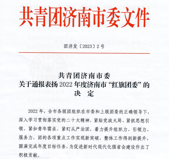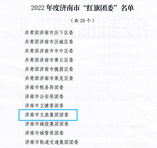 3月2日,共青團濟南市十七屆六次全委(擴大)會(huì )議召開(kāi)。會(huì )議下發(fā)了《共青團濟南市委關(guān)于通報表?yè)P2022年度濟南市“紅旗團委”的決定》,濟南文旅集團團委榮獲2022年度濟南市“紅旗團委”榮譽(yù)稱(chēng)號。