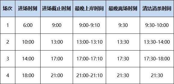 “最晚上岸時(shí)間”:考慮到游泳后需要淋浴、更衣,建議游客在此時(shí)間段內上岸,確保預留出充足時(shí)間進(jìn)行淋浴、更衣,避免聚集,確保能夠準時(shí)離場(chǎng)。