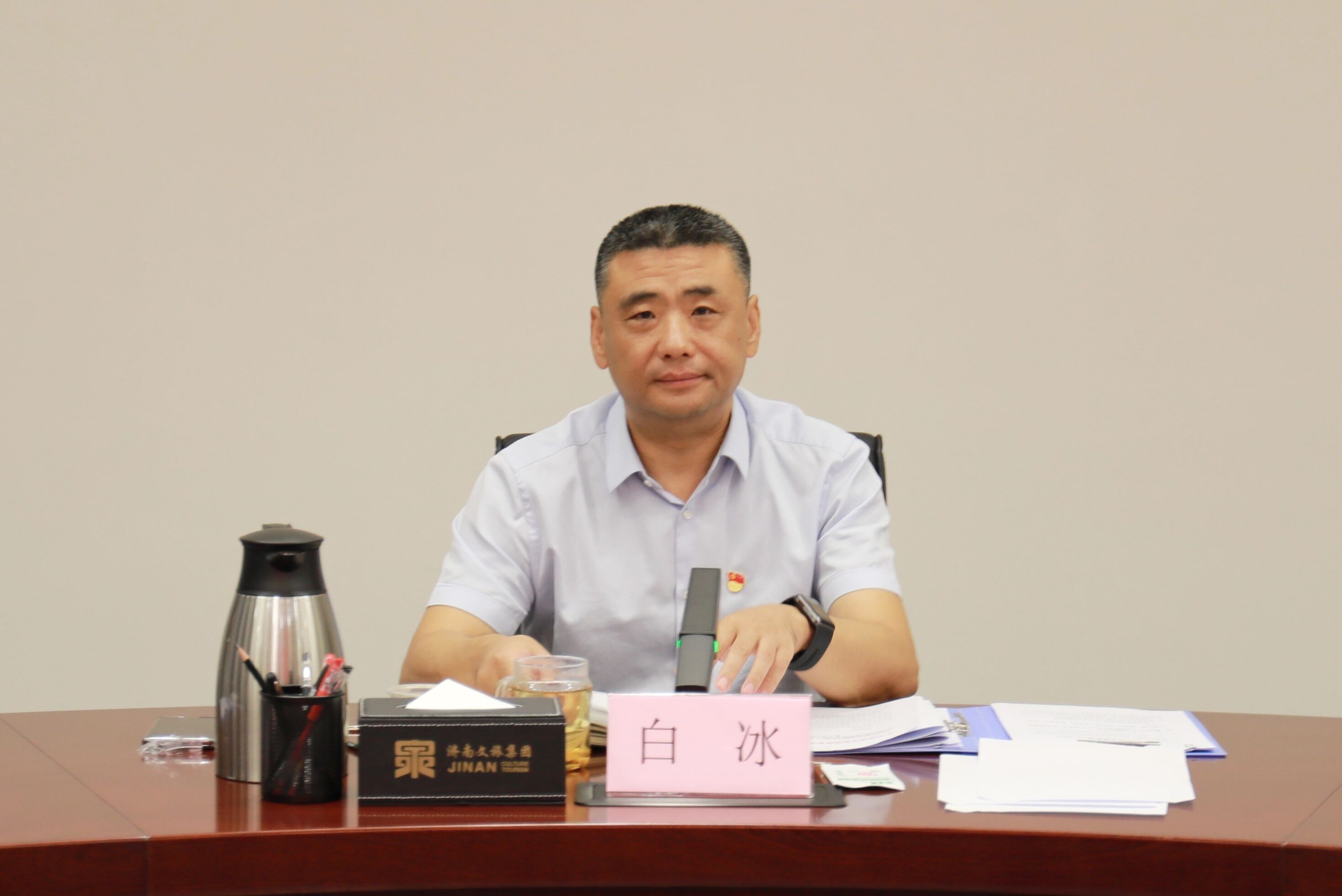 8月4日下午,濟南文旅集團召開(kāi)黨委理論學(xué)習中心組2023年第9次集體學(xué)習暨主題教育專(zhuān)題民主生活會(huì )集中學(xué)習。集團黨委副書(shū)記、總經(jīng)理白冰主持會(huì )議并講話(huà)。