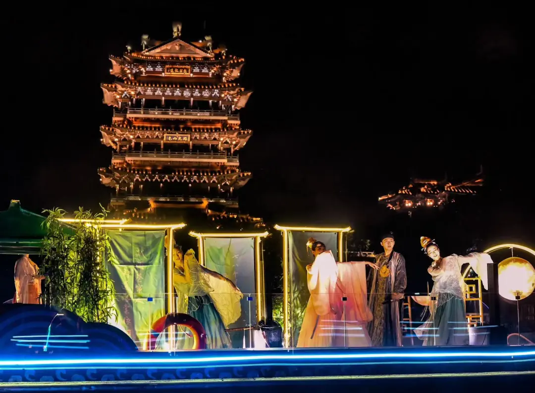 畫(huà)船演藝是泉城夜游IP“遇見(jiàn)明湖”的十大場(chǎng)景之一,也是大明湖夜游的常態(tài)化演藝項目,以泉城文化為核心,將大明湖的歷史文化與傳統音樂(lè )、戲曲、舞蹈藝術(shù)以及現代舞美元素相結合,創(chuàng )新性打造湖上實(shí)景演藝舞臺,呈現富有創(chuàng )意與藝術(shù)感的精彩演出。