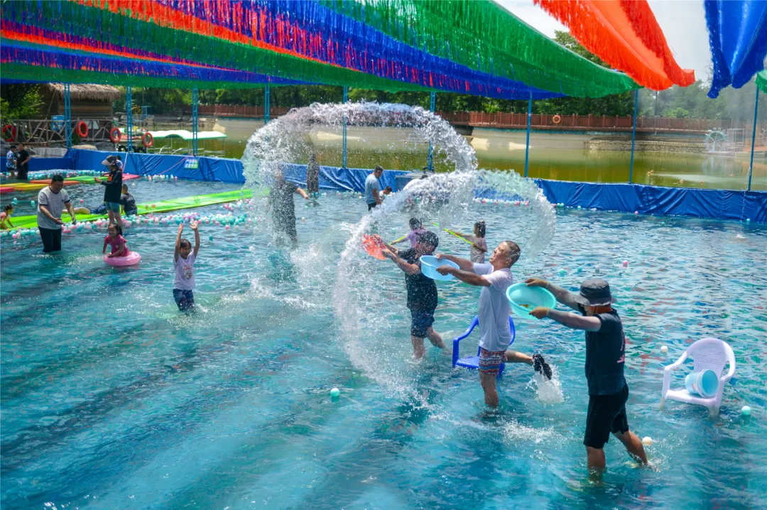 在“戲水魚(yú)塘”里時(shí)而摸魚(yú)嬉戲,時(shí)而來(lái)一場(chǎng)水上闖關(guān),夏日玩水的熱情在這里徹底點(diǎn)燃;“泥鰍沙灘”是個(gè)寶藏樂(lè )園,在這里時(shí)間仿佛倒流,肆意的玩沙子、捉泥鰍、挖田螺,感受兒時(shí)的喜悅和快樂(lè );坐在“楓林溪”中看著(zhù)潺潺的流水,一米陽(yáng)光穿過(guò)茂密的楓林散落在水面上,盡享大自然饋贈的浪漫與美好。