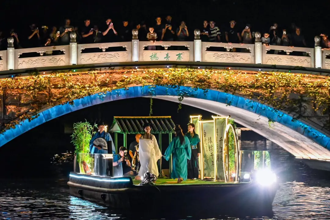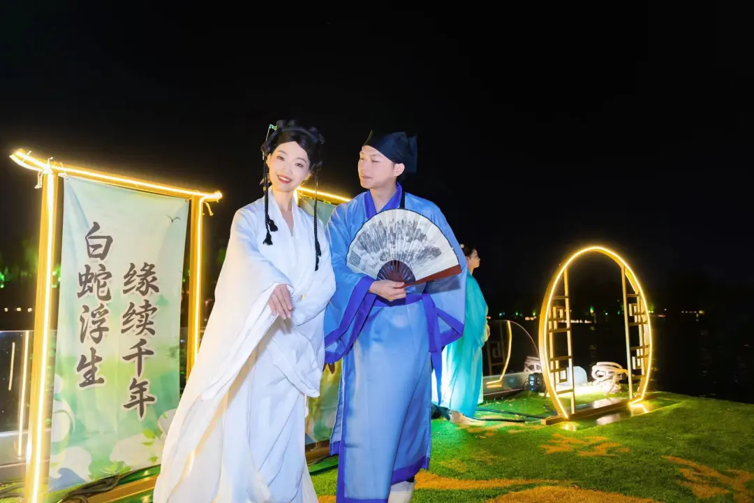 本次演出融合國漫電影《白蛇·浮生》元素,打造電影主題國風(fēng)船只,演員化身電影中的經(jīng)典角色白蛇、青蛇與許仙,配合電影經(jīng)典片尾曲《千年等一回》、主題曲《浮生一白》、定情曲《何須問(wèn)》等優(yōu)美旋律,在七夕節當晚現場(chǎng)演繹白娘子與許仙的愛(ài)情故事,將這段發(fā)生在西湖的美麗故事轉移至大明湖,續寫(xiě)經(jīng)典愛(ài)情神話(huà),營(yíng)造七夕浪漫氛圍,展現城市文化旅游深厚底蘊。