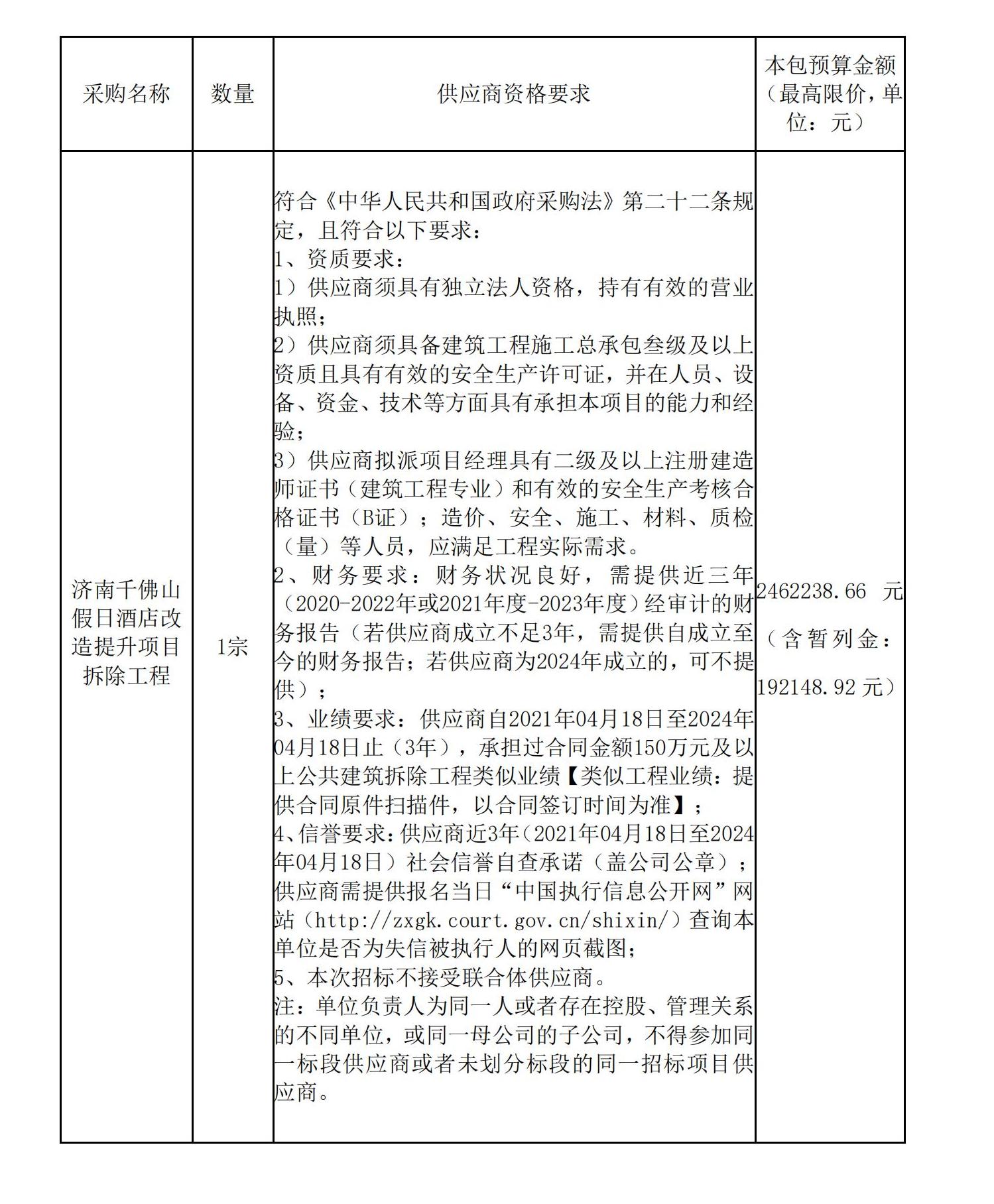 二、采購項目名稱(chēng):濟南千佛山假日酒店改造提升項目拆除工程