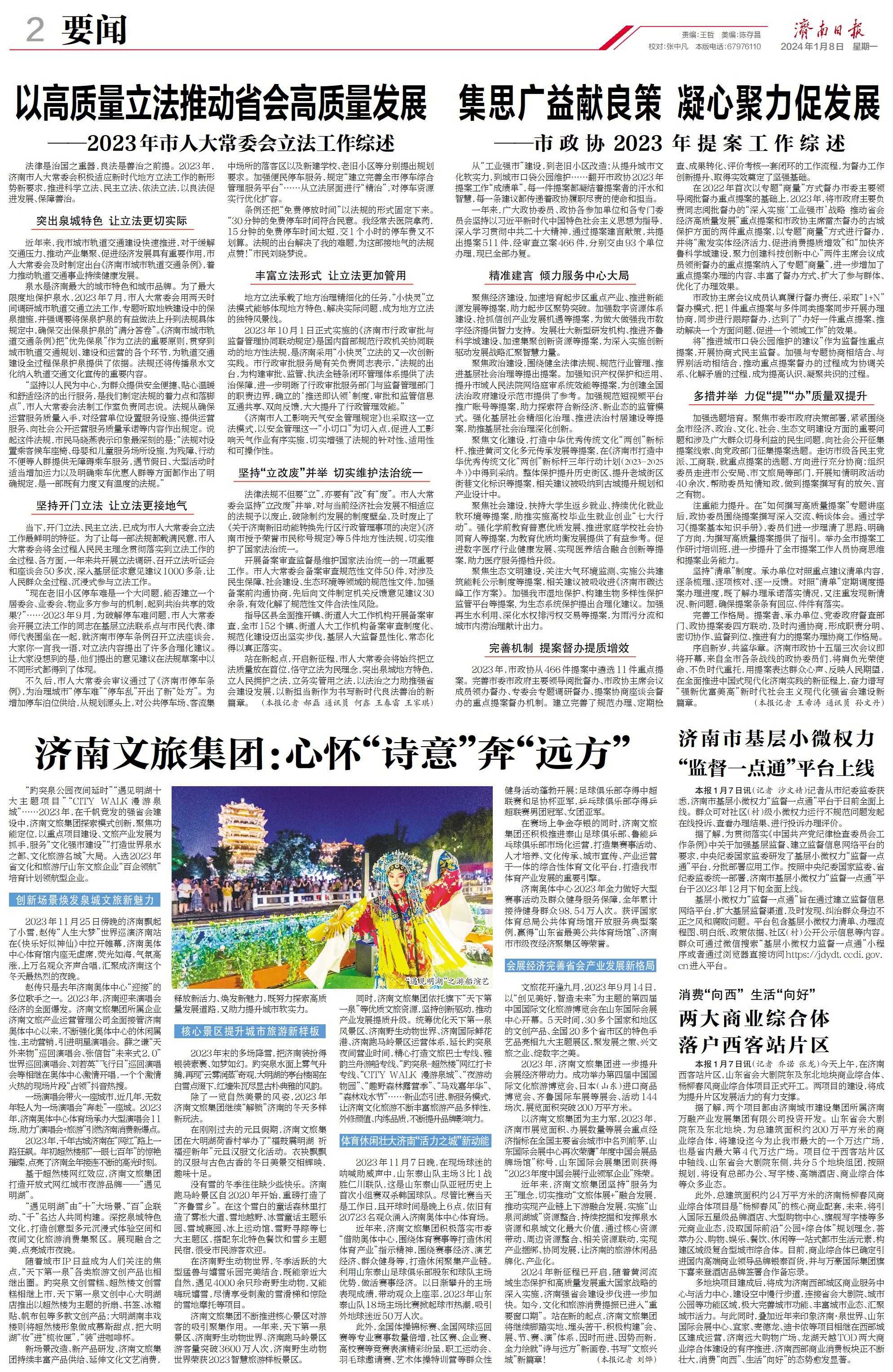 2024年1月8日,《濟南日報》要聞版刊發(fā)《濟南文旅集團:心懷“詩(shī)意”奔“遠方”》的文章,采寫(xiě)記者為劉燁。文章寫(xiě)到,2023年,在千帆競發(fā)的強省會(huì )建設中,濟南文旅集團探索模式創(chuàng )新,聚焦功能定位,以重點(diǎn)項目建設、文旅產(chǎn)業(yè)發(fā)展為抓手,服務(wù)“文化強市建設”“打造世界泉水之都、文化旅游名城”大局。如下為稿件詳情——