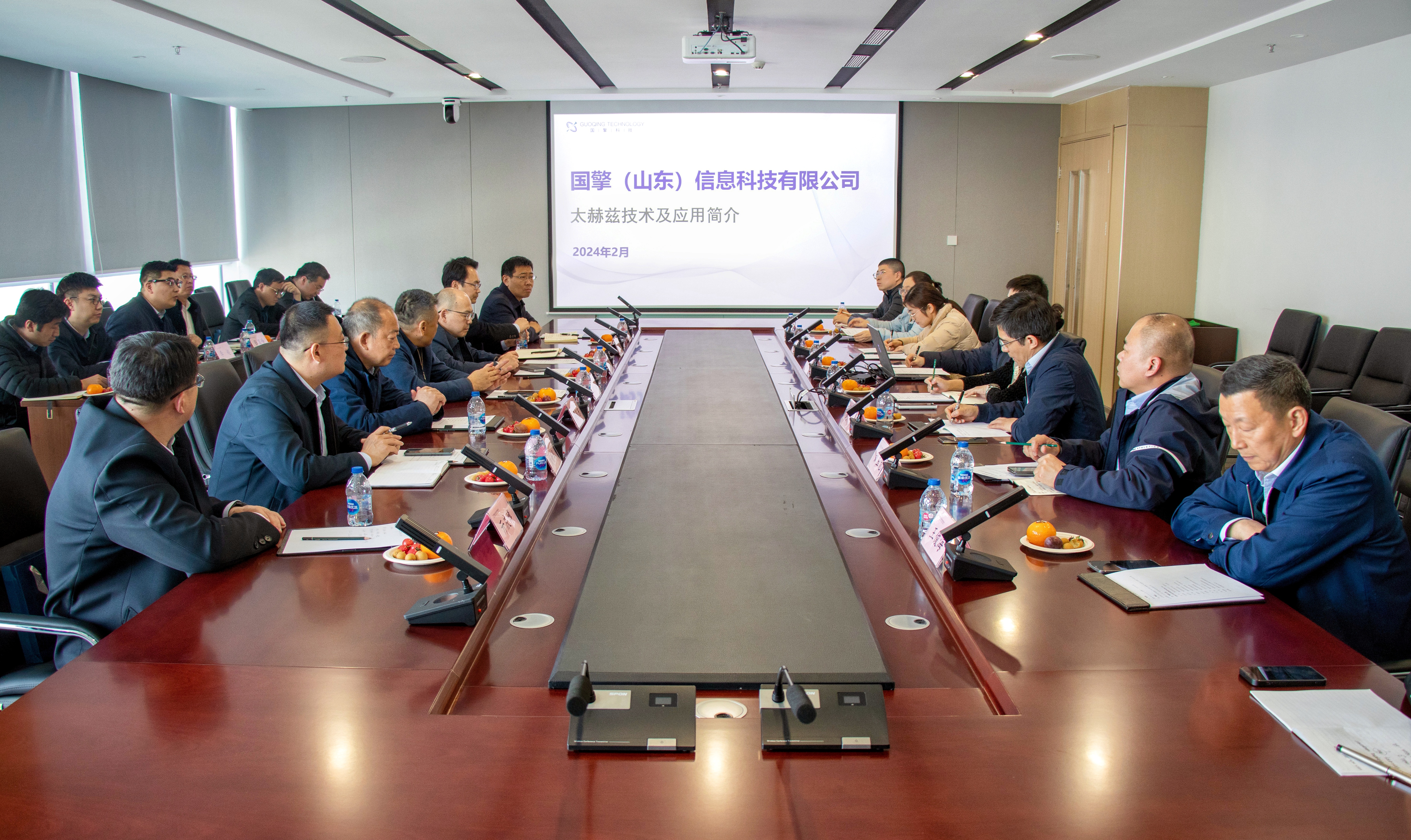 調研組首先參觀(guān)了國擎公司企業(yè)展廳,國擎公司總經(jīng)理胡睿佶介紹了太赫茲技術(shù)在國內外的發(fā)展歷程以及國擎公司在太赫茲技術(shù)領(lǐng)域的最新成果產(chǎn)品和模擬場(chǎng)景應用。