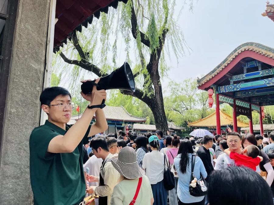 “趵突泉主泉池附近可以說(shuō)是人流較密集的區域,所以這里的安全、秩序保障尤為重要。”工作人員介紹,假期期間,游客較多,景區根據情況靈活調整入園時(shí)間,“三股水”景點(diǎn)處一天下來(lái)都可以說(shuō)是游人如織,為此常常是從早站到晚。不僅是秩序引導,工作人員還得是景區“百事通”,負責解答游客的求助與問(wèn)題,為此還被游客親切地稱(chēng)為趵突泉“站哥”。