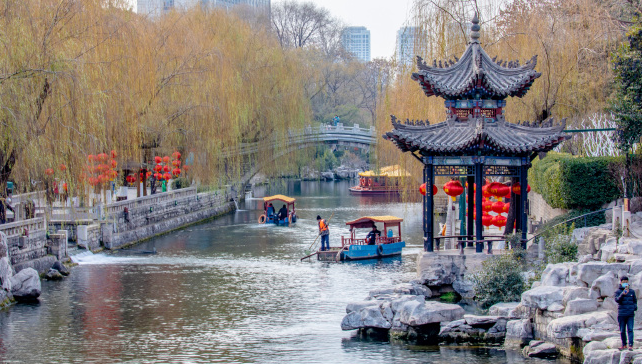 大明湖進(jìn)入“多彩斑斕季” 泛舟游湖感受初冬美景