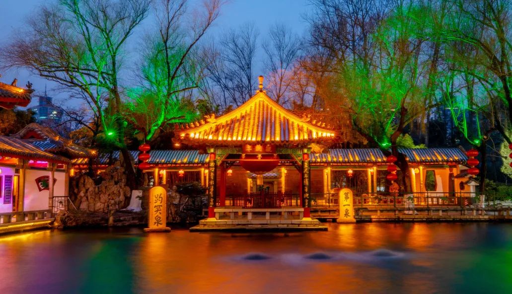 趵突泉古稱(chēng)“濼”,《春秋》記載,魯桓公十八年(公元前694年)“公會(huì )齊侯于濼”,宋代曾鞏取其跳躍奔突的特點(diǎn),定名為趵突泉。天下第一泉風(fēng)景區自然風(fēng)光秀美,人文底蘊深厚,以趵突泉為核心,泉流成河、再匯成湖,并與明府古城相依相生,泉、河、湖、城融為一體,集中展現了獨特的泉水水域風(fēng)光,是泉城特色標志區的重要組成部分。常年舉辦春節文化廟會(huì )、迎春花燈會(huì )、金秋菊展、龍舟大賽、荷花藝術(shù)節、國際冬泳節等十余項大型傳統文化活動(dòng),體現了泉城濟南獨有的景觀(guān)和民俗文化特色。以趵突泉為代表的濟南泉水2009年被列入世界自然和文化雙遺產(chǎn)預備名錄;護城河泉水游覽景觀(guān)帶2011年11月被《求是》雜志推選為中國十大休閑勝地,2011年12月被住建部評為中國人居環(huán)境范例獎。